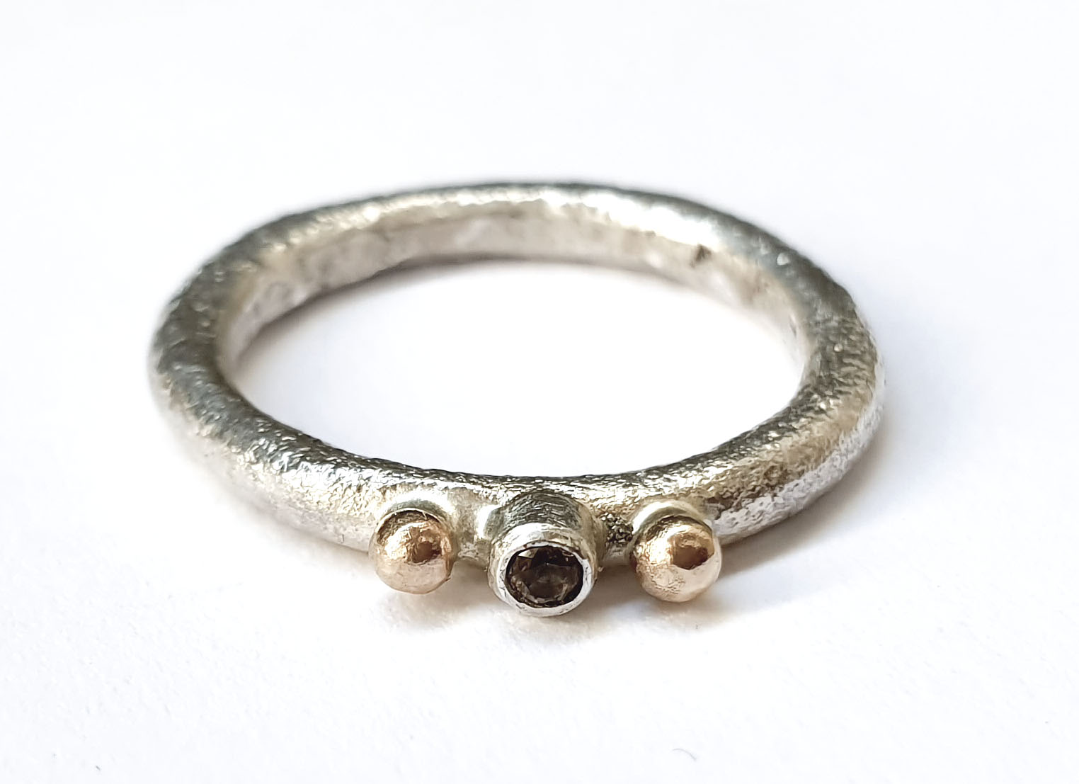 Vigselring med 2 guldkulor och rökkvarts